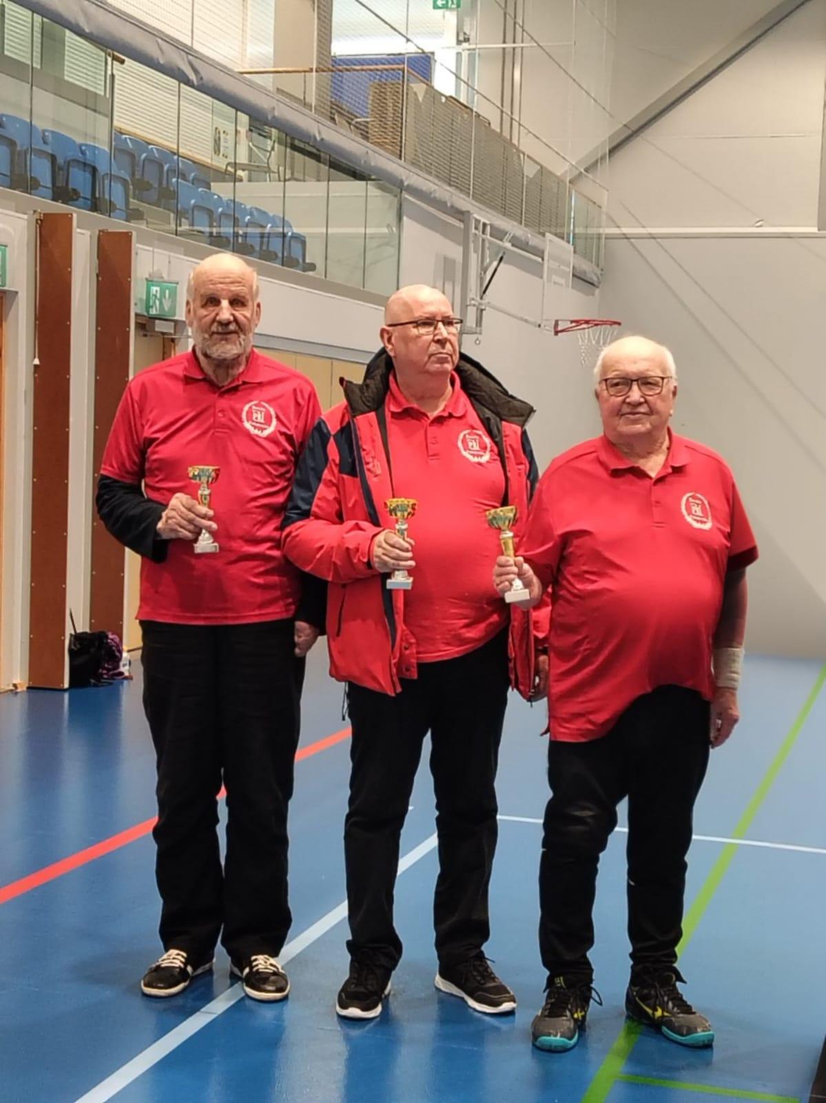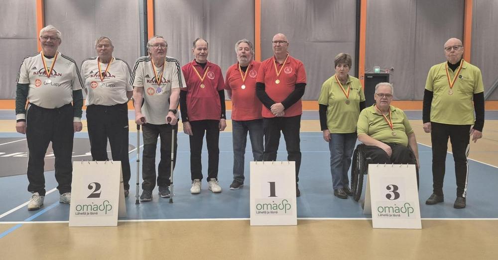Mikkelinpiirin boccian joukkumestaruuskisoista 24.2. hopeaa pokkasi Pieksämäen joukkue Raimo Villanen, Veijo Leppänen ja Keijo Kaatranen.